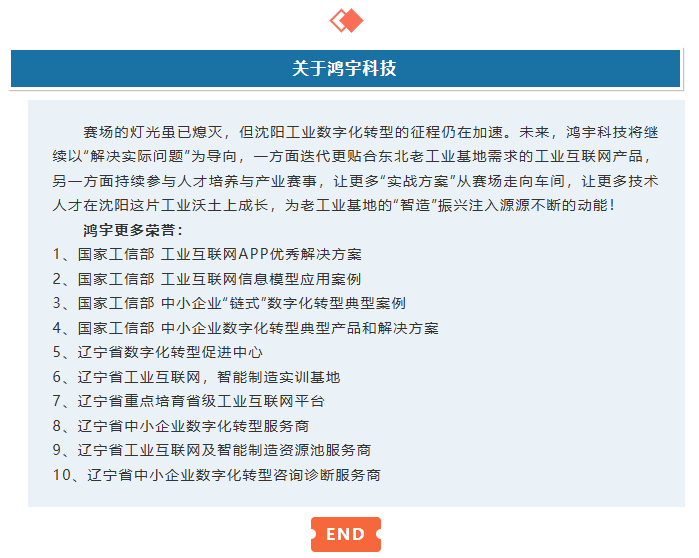 作为扎根沈阳13年的工业互联网“老兵”,鸿宇科技始终坚信:“真正的技术价值,要在解决企业痛点中生长。”此次深度参与大赛,我们不仅是技术保障者,更是产业需求的“翻译官”,将沈阳装备制造、汽车零部件等行业的真实运维难题,转化为赛场可操作、可落地的竞技任务,让每一份优秀答卷都能成为企业数字化转型的“金钥匙”。