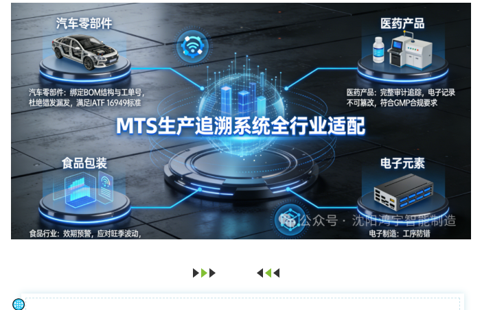 从汽车零部件的批次精准管理、医药产品的温控全程追溯,到食品行业的效期预警、电子制造的工序防错,MTS系统能适配不同行业的核心需求: