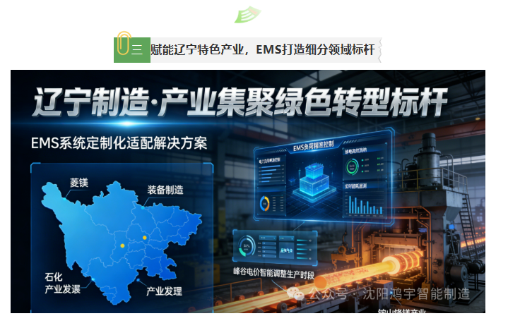 不同产业的定制化落地,让EMS系统在辽宁制造的土壤中生根发芽,从单一企业的节能改造,逐步辐射到产业集群的整体升级,推动辽宁特色制造产业形成“绿色低碳、高效智能”的发展新格局。