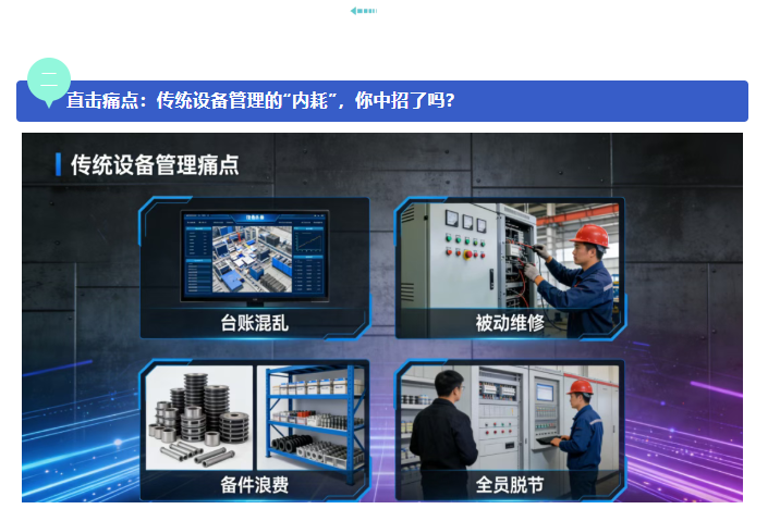 ✅ 台账混乱:设备参数、维修记录、备件信息靠Excel手工记录,更新滞后、查询不便,甚至出现“一台设备多个台账”的情况,人工台账误差率超15%;