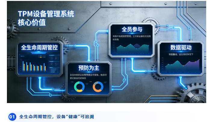 引入TPM设备管理系统后,企业的设备管理将实现“质的飞跃”,从“被动应对”转向“主动管控”,核心价值体现在这4个方面: