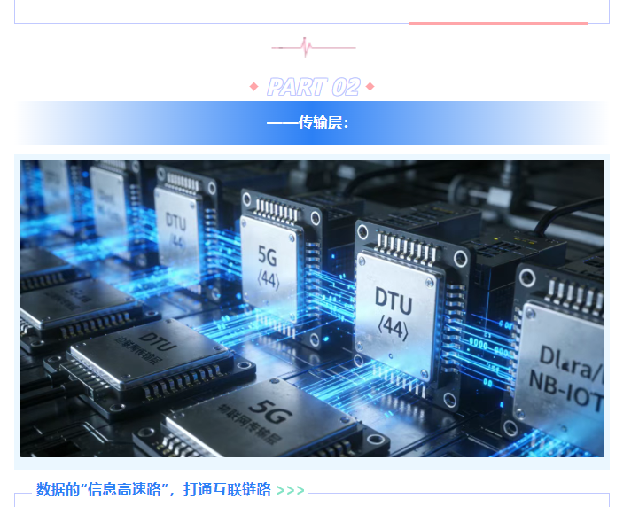 传输层的核心目标是实现“采得到、传得出、传得准”,让数据从分散的感知设备,顺利流转至数据处理中心。