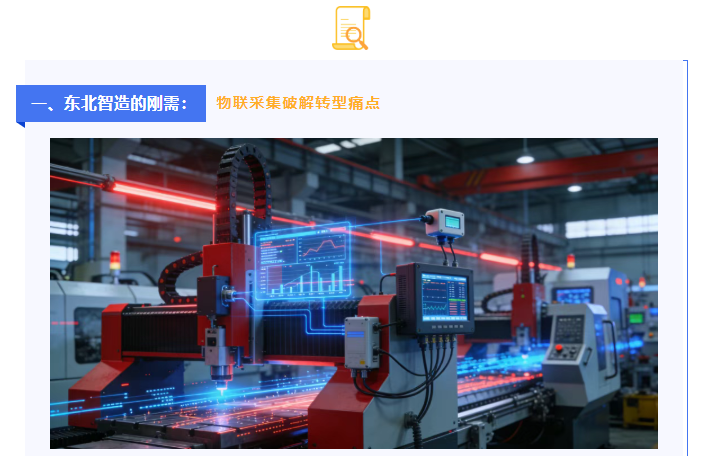 从“钢铁熔炉”到“数字大脑”,从“老工业基地”到“智造新高地”,物联网设备与数据采集技术正在为东北制造业注入数字活力。这片孕育了共和国工业荣光的土地,正以物联采集为支点,撬动传统产业的全方位升级,让东北智造在数字浪潮中重焕生机,成为中国制造业高质量发展的重要支撑。
