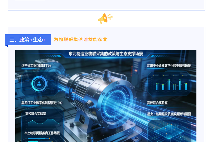 同时,东北本土的“政产学研用”生态正在形成:东北大学等高校与本土企业成立联合实验室,研发适配东北工业场景的物联采集技术;本土服务商深耕工业物联网,打造从设备感知到数据采集的全链路解决方案;为物联采集数据提供安全、高效的流转与解析平台。政策搭台、技术唱戏、企业受益,让物联采集技术在东北制造业的落地有了坚实的生态根基。