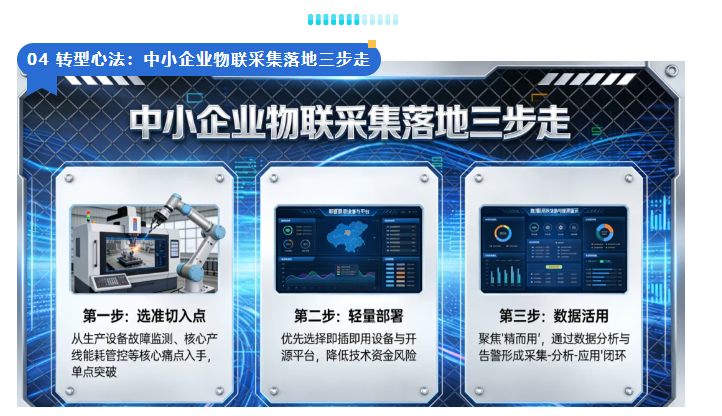 ·第三步,数据活用,不追求数据的“全而多”,而是聚焦“精而用”,通过简单的数据分析和告警设置,让数据直接服务于生产和管理,形成“采集-分析-应用”的闭环。