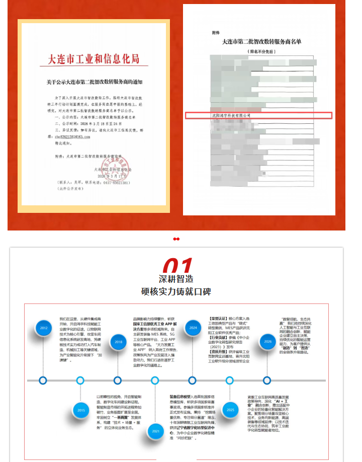 此次入选大连市智改数转服务商,既是荣誉,更是责任。未来,鸿宇科技将继续发挥技术与经验优势,为大连及周边地区制造企业提供全流程智改数转服务,从方案设计、项目落地到运营优化,全程陪伴企业完成数字化升级。