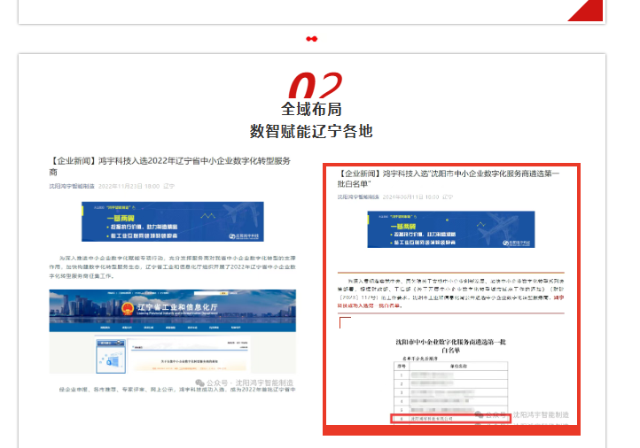 喜讯来袭!沈阳鸿宇科技有限公司再获行业权威认可,在斩获辽宁省、沈阳市、鞍山市、朝阳市、辽阳市中小企业数字化转型服务商资质后,成功入选大连市第二批智改数转服务商公示名单,这份由大连市工业和信息化局发布的公示结果,是对鸿宇科技技术实力与服务能力的又一高度肯定!