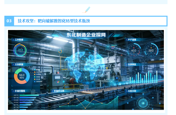 东北制造的产业特性决定了其数智化转型不能照搬通用化技术方案,高端装备制造需要工业软件与核心工艺的深度融合,重工生产需要智能传感与大型设备的精准适配,精密加工需要工业物联网与质量管控的技术协同,不同细分领域的技术升级需求差异显著。