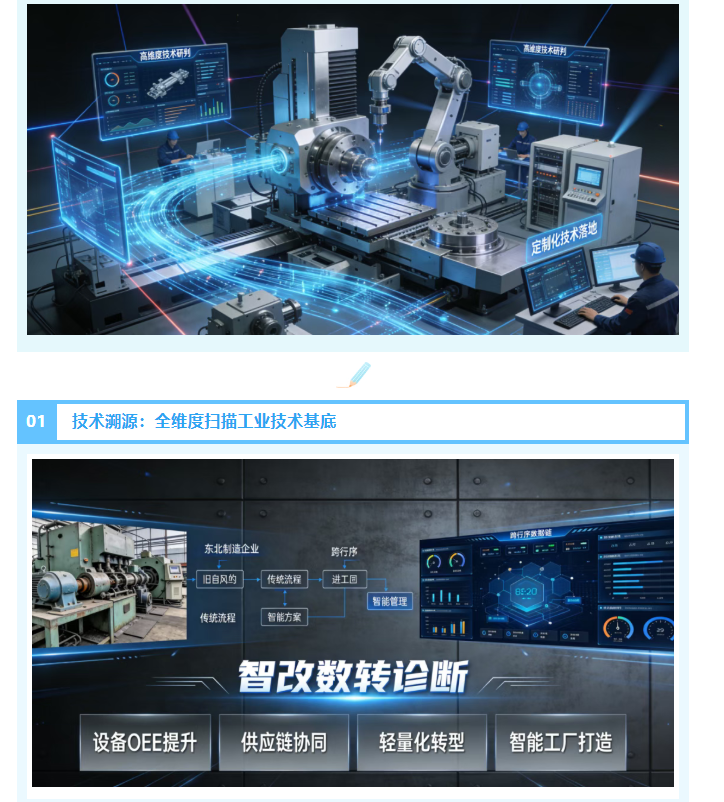 东北制造的数智化升级,核心是工业技术与数字技术的深度融合、双向赋能。高规格的智改数转诊断,以技术为核心抓手,从溯源、适配、攻坚到迭代,为东北制造企业的数智化转型提供全维度的技术支撑,让老工业基地在数智化浪潮中,以硬核技术实力筑牢发展根基,推动东北制造向更高水平的智能制造进阶,续写中国工业制造的东北篇章!