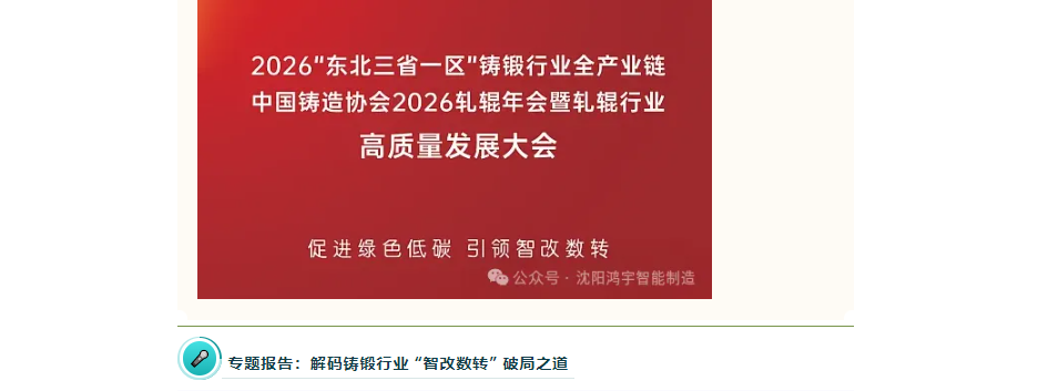 4月23-24日,2026“东北三省一区“铸锻行业全产业链-中国铸造协会2026轧辊年会暨轧辊行业高质量发展大会于沈阳盛大召开。大会围绕绿色化、数智化、高端化发展方向,汇聚行业精英共商产业升级路径。沈阳鸿宇科技有限公司受邀参会,以报告人及参展商双重身份亮相,公司董事长高国平将带来铸锻行业智改数转专题分享,同时携核心数字化产品现场展出,诚邀各界同仁莅临交流,共探行业低碳转型与高质量发展新路径。