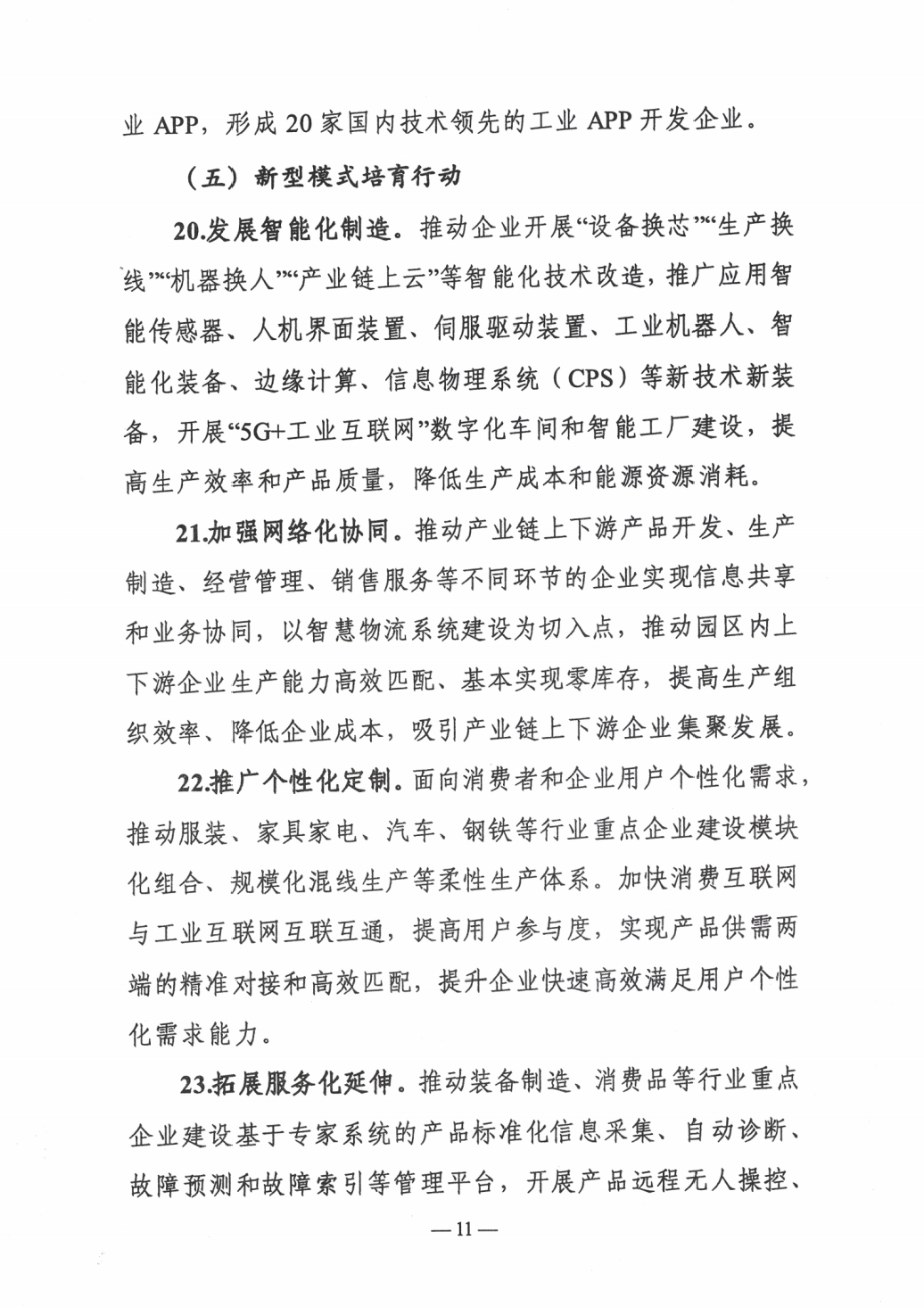 融合应用成效进一步彰显。重点行业智能化制造、网络化协同、服务化延伸、个性化定制、数字化管理等新模式新业态普及程度大幅度提升。产业链重点企业生产效率提高20%以上、新模式应用普及率达到50%以上,制造业数字化、网络化、智能化发展能力显著提高,提质、增效、降本、绿色、安全发展成效不断提升。