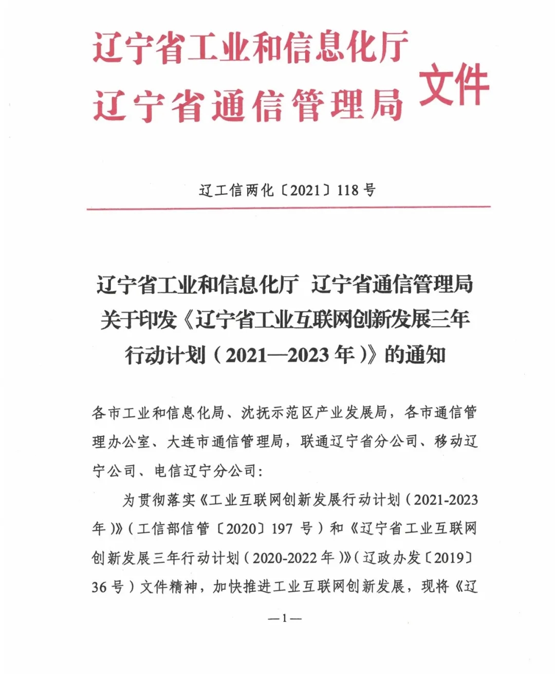 【行业资讯】辽宁省工业互联网创新发展三年行动计划出台