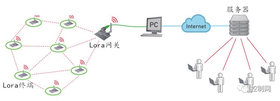 图8所示的LoRa网络主要由LoRa终端(可内置LoRa模块)、LoRa网关(或称基站)和包括网络服务器、应用服务器在内的服务器,最终组成一个典型的星形拓扑结构。在该结构体系中,LoRa网关的作用就相当于一个透明传输的中继,用来连接现场的LoRa终端设备和远端的相关服务器,并双向传输来自设备、过程、远端服务器等的各种数据,如传感器数据、建模用的标准处理数据、传到应用层的加工后数据等。