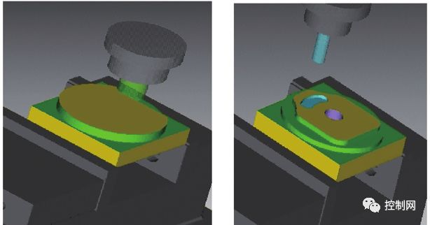 某产品加工如图3所示零件,现采用Vericut软件自带的三轴铣削机床样本可满足要求,仿真结果如图4所示。