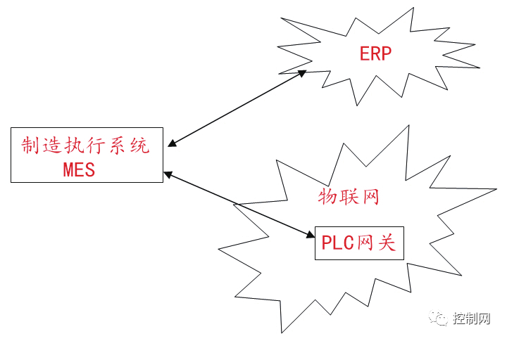 图6所示为工业控制系统拓扑结构图,PLC等控制系统除了按照设备应用程序自动化运行之外,它还可以通过PLC网关等与物联网平台进行数据汇聚,并与MES系统进行数据交换,可以将设备运行的时间、产品数量等基本参数实时传送到MES系统中,通过MES系统与ERP等管理应用软件建立星型拓扑联系,如图7所示。