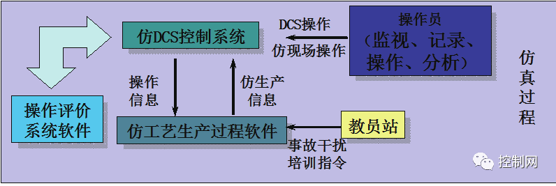 图8所示的工艺仿真是指通过动态过程数学模型来模拟现场的实际装置,由工艺仿真服务器及工艺数学模型组成的仿工艺生产过程软件实现;控制仿真,即仿DCS控制系统,包括组态控制逻辑的仿真和虚拟DPU技术。