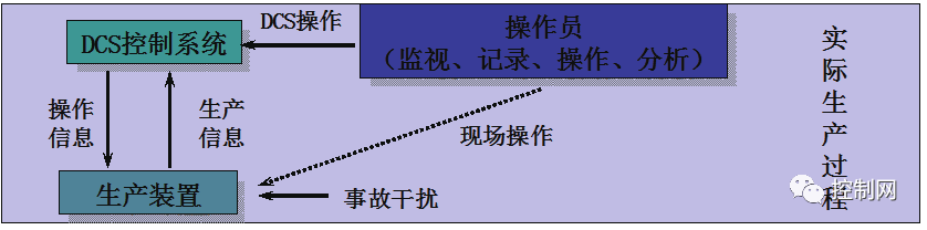 图7所示为流程制造的实际生产过程与仿真过程。流程制造往往通过DCS、PLC等控制系统与生产装置进行操作信息和生产信息的双向数据传递,其基于虚拟DCS的仿真系统主要由工艺仿真、控制仿真组成。