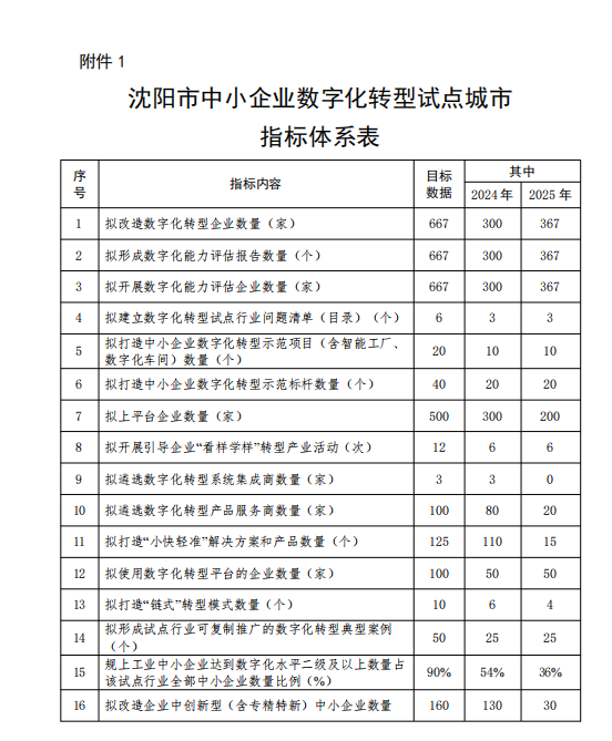 附件:1.沈阳市中小企业数字化转型试点城市指标体系表