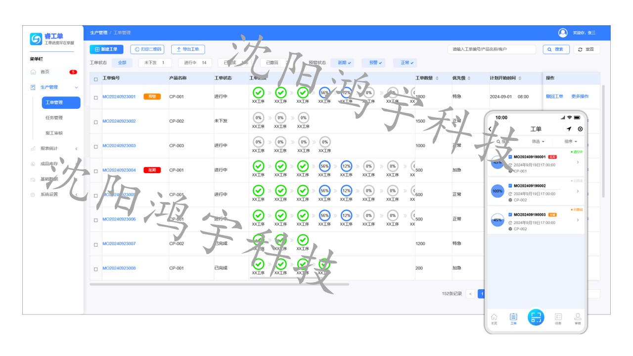 生产管理:全面覆盖从工单创建到生产执行,再到审核报工的完整管理链条,实现生产流程的闭环监控与优化。