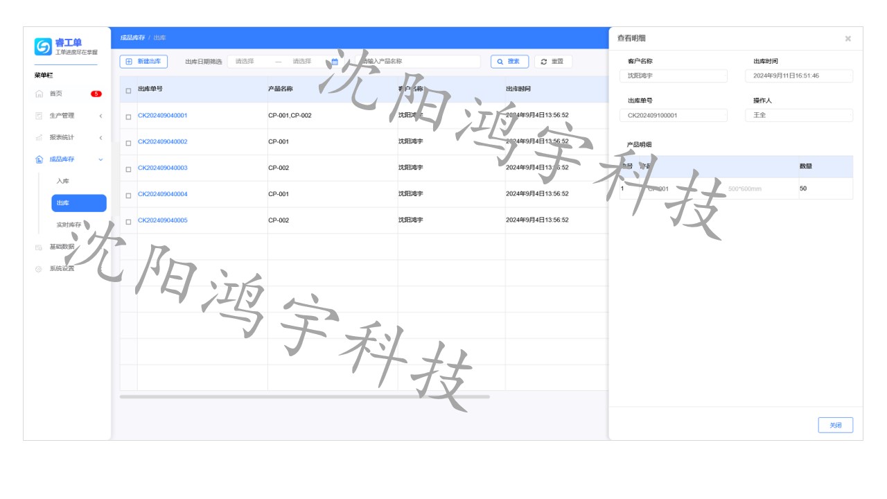 成品库存管理:集成成品入库、出库管理功能,支持库存实时查询与出库单打印,简化库存管理流程,提升运营效率。