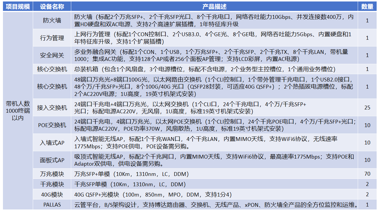 网络设备选型建议方案(带机人数1000终端以内)