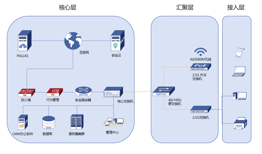 采用先进的无线局域网(WLAN)技术,构建一个高速、稳定、安全的无线网。网络架构包括无线接入点(AP)、无线控制器(AC)、核心交换机等设备,实现对整个网络的集中管理和控制。
