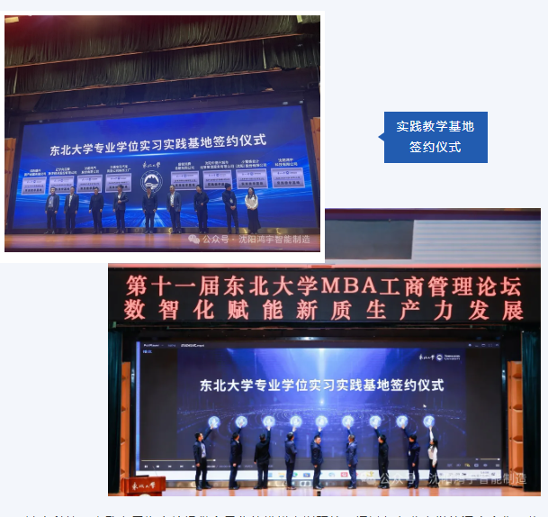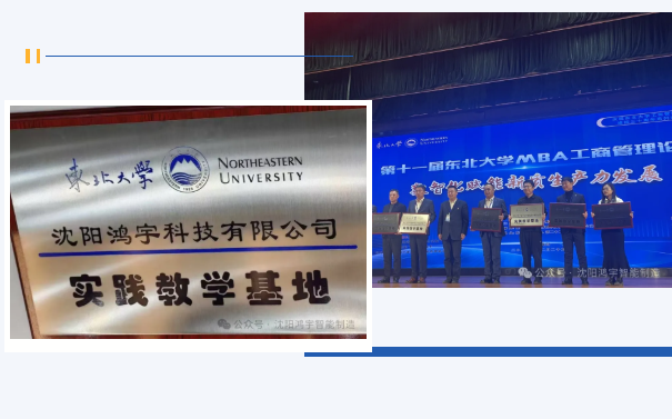 在本次论坛的实践基地签约仪式环节,鸿宇科技凭借在智能制造和工业互联网领域的卓越成就以及对教育实践的积极投入,荣获东北大学工商管理学院授予的实践教学基地牌匾。这一殊荣不仅是对鸿宇科技多年来在工业互联网实训教育方面努力的高度认可,更是对公司未来在产教融合领域发挥更大作用的殷切期望。