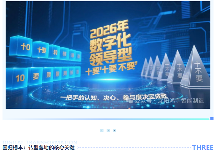 数字化转型是“一把手工程”,但不少企业一把手因认知偏差,陷入“不懂数字化、转型流于形式”的困局。2026年转型进入深水区,一把手必须补齐认知短板、明确角色定位,才能让数字化从口号落地为核心驱动力。