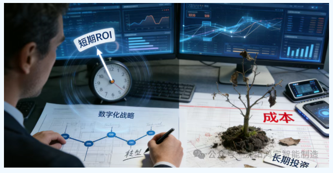 用工业化ROI思维衡量数字化价值,期望短期“降本增效”,将投入视为“烧钱”,短期无回报便动摇放弃,忽视其长期战略投资属性。