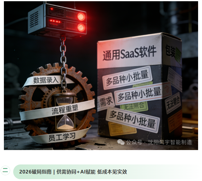 1.成本敏感不敢投:高度定制化系统动辄几十万,超出中小微企业承受范围;通用SaaS软件虽便宜,却难适配沈阳本地企业“多品种、小批量”的异质性需求,钱花了用不顺手。
