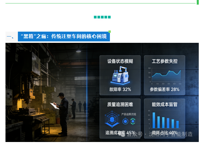 2.工艺参数失控:注射压力、保压时间、模温等核心参数人工记录滞后,微小波动难捕捉,导致产品质量不稳定,调参周期长、废品率高。