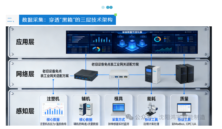 1.采集阶段(1-3个月):优先联网核心注塑机与关键辅机,部署边缘网关,打通设备数据链,确保数据“采得全、抓得准”。