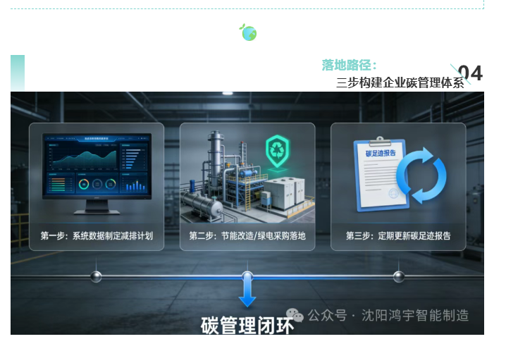 ·持续优化:基于系统数据制定减排计划,落地节能改造、绿电采购等措施,定期更新碳足迹报告,实现碳管理闭环。