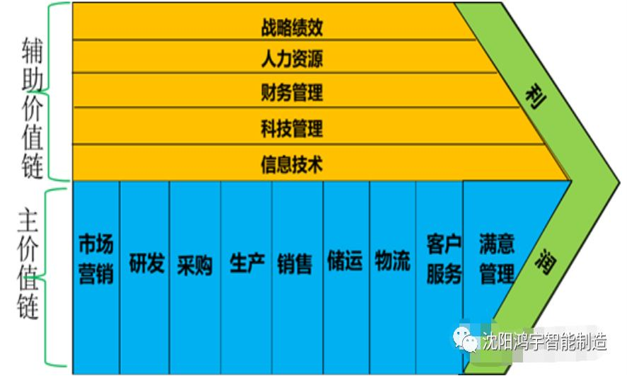 按照迈克尔.波特的价值链理论,企业的价值分为两个维度,一个是以业务为主线的主价值链,一个是支撑业务的辅助价值链。现有的大部分中大型企业基本上是以价值链维度来划分组织及流程设计,而且大都采用科层式的组织架构,与此相对应的组织划分就是管理职能部门及业务部门,一般的工业企业价值链见下图一