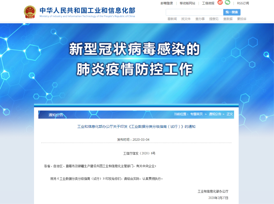 现将《工业数据分类分级指南(试行)》印发给你们,请结合实际,认真贯彻执行。