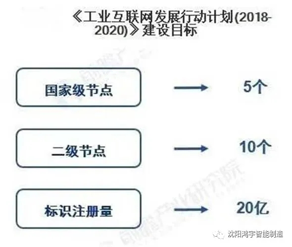 根据《工业互联网发展行动计划(2018-2020)》,考核目标是2020年建成5个左右标识解析国家顶级节点,形成10个以上公共标识解析体系服务节点,标识注册量超过20亿。