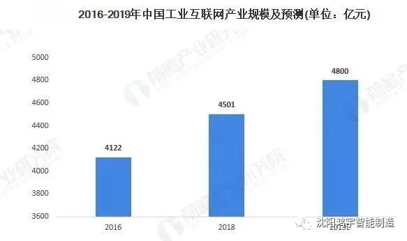 2018年是我国工业互联网发展的元年,市场规模为4501亿元。工业互联网热度不断升高,在政策与市场的双重驱动下,产业步入快车道,发展工业互联网既是两化融合大势所趋,又是国家战略中重要的组成部分。据2019工业互联网峰会上工业和信息化部副部长陈肇雄引述的观点2019年我国工业互联网产业市场规模达4800亿元,较2018年增长6.64%。