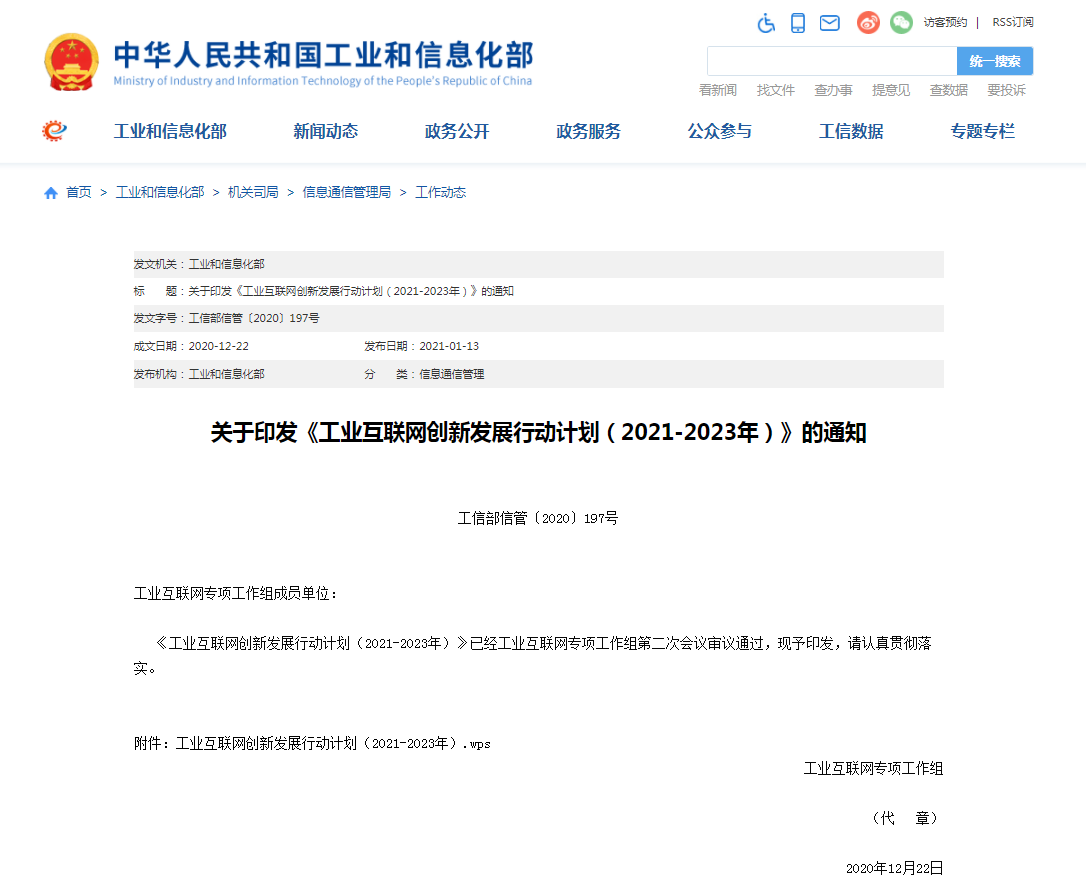 未来三年是工业互联网的快速成长期。为深入贯彻习近平总书记对工业互联网的一系列重要指示精神,落实党中央、国务院决策部署,进一步巩固提升发展成效,更好地谋划推进未来一个阶段发展工作,工业和信息化部印发《工业互联网创新发展行动计划(2021-2023年)》(工信部信管〔2020〕197号,以下简称《三年行动计划》)。