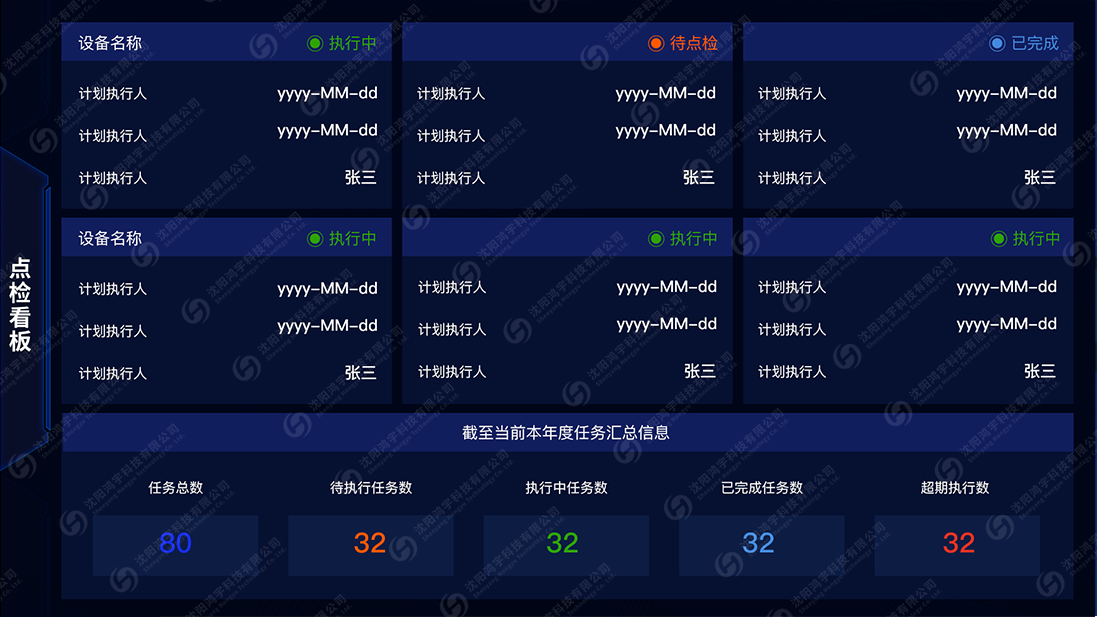 • 报表及看板管理:点检系统报表可根据日期,班组,人员,设备信息,查询出点检历史记录,已完成的数量,待完成的数量等。点检状态和点检结果的汇总后通过电子看板形式进行展示。