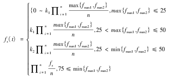 (2)假定中心i内存在2个最大影响因素,其它模块受其能力水平的影响,即:fmax1(t),fmax2(t)。其它模块为: