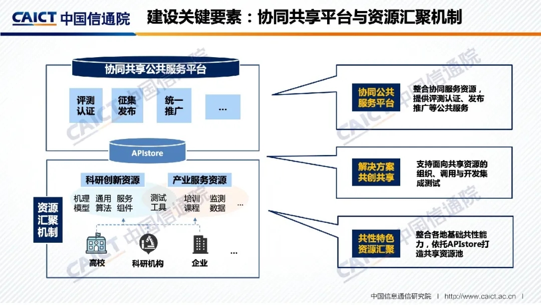三是构建资源汇聚与协同共享机制。依托工业互联网平台API store构建共享资源池,整合各类高校、科研机构、企业的科研创新资源和产业服务资源,共享各类机理模型、测试工具以及检测数据和培训资源,并提供面向资源能力重组与价值挖掘的解决方案共创。