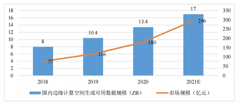 图片▲ 2018-2020 年中国边缘计算数据量与市场规模(单位:ZB,亿元)