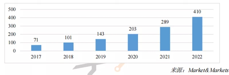 图片▲ 2017-2022 年全球室内定位市场规模(单位:亿美元)