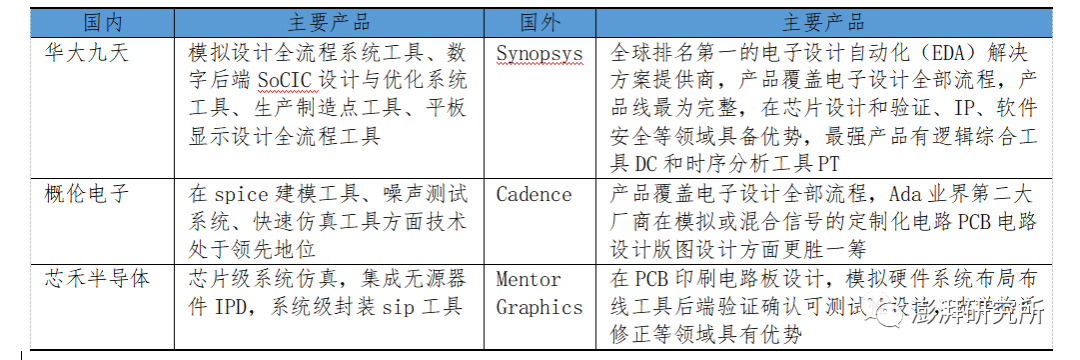 4、国际巨头主要从事高端环节和提供全流程工具链,国内厂商与之相比,差距巨大