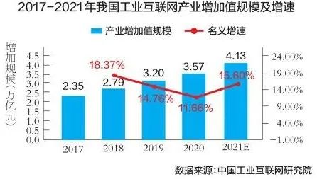 工业互联网对经济的带动效能持续提升,据测算,2020年我国工业互联网产业增加值规模已达到3.57万亿元。预计2021年,工业互联网产业增加值规模突破4万亿元,成为促进我国经济高质量发展的重要力量。