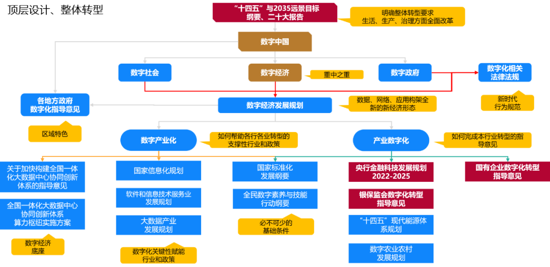 笔者认为上至国家政策,下至企业实践、个人学习,逐渐都显露出一条主线,就是政策中提到的“激活数据要素潜能”、“构建网络强国”,以及为“数字社会、数字经济、数字政府”演进提供的各类软件,数据、工具、网络,就是数字化新生产方式的概括,数据是新要素、工具主要是软件、网络承载关系,从“数字中国”到“数字企业”再到“数字公民”,都会围绕这个线索进行转型工作,具象化的远景目标可以用类似元宇宙概念的基于虚拟空间的跨地区、虚实协同,近景目标则是多维度探索数据的应用潜力,为劳动岗位、劳动力的数字化转型设计方向,用数字化提升企业对未来变化的适应力。
