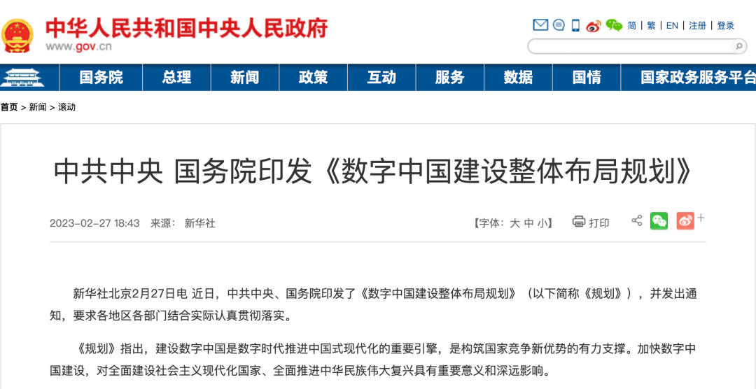 近日,中共中央、国务院印发了《数字中国建设整体布局规划》(以下简称《规划》),并发出通知,要求各地区各部门结合实际认真贯彻落实。