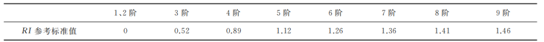表4 平均随机一致性指标参考标准值