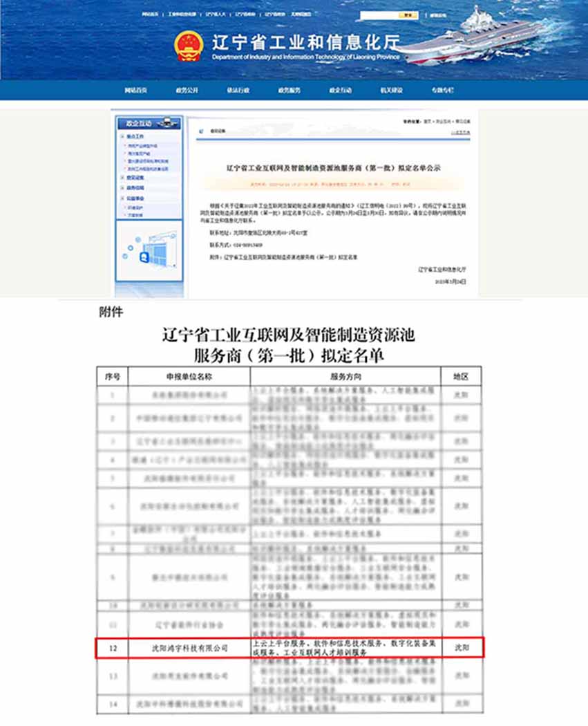 【企业新闻】鸿宇科技入选辽宁省工业互联网及智能制造资源池服务商