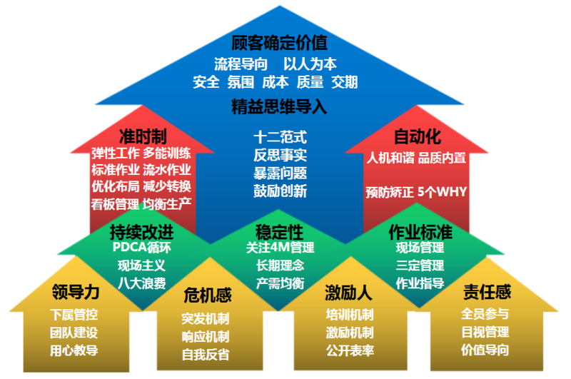 实施精益生产就是决心追求完美的历程,也是追求卓越的过程,它是支撑个人与企业生命的一种精神力量,也是在永无止境的学习过程中获得自我满足的一种境界。